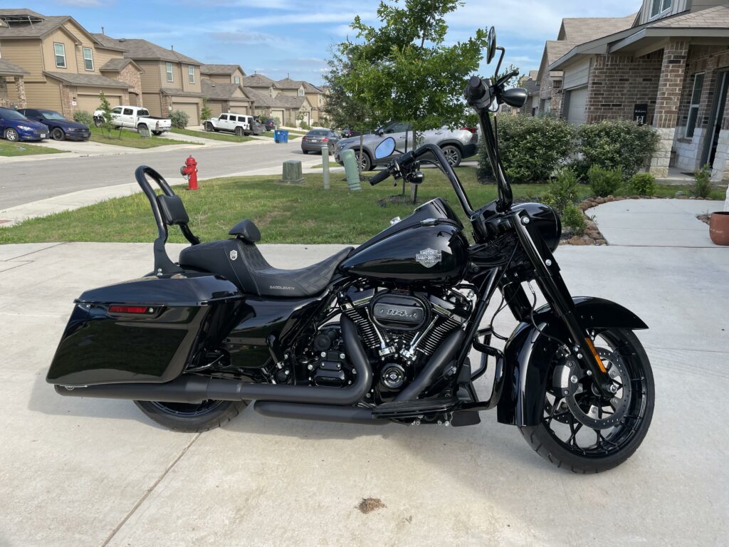 - Road King Special : Elle joue la carte du Dark Custom. Tout est noir : le moteur, l’échappement, le guidon (souvent un « Mini-Ape » plus haut). Elle n’a pas de pare-brise de série, accentuant son look agressif.